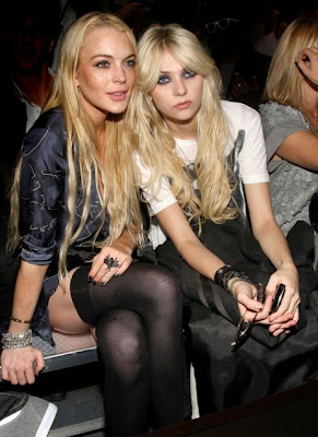 ... Ao que pareçe, a menina Taylor é a nova BFF de LiLo (Lindsay Lohan - a jovem ultra problenática de Hollywood!)! As duas aderiram à pseudo tendência de usar lingerie como roupa! huum... O resultado como podem ver (outra vez) é fabulástico (tom, obviamente, irónico).