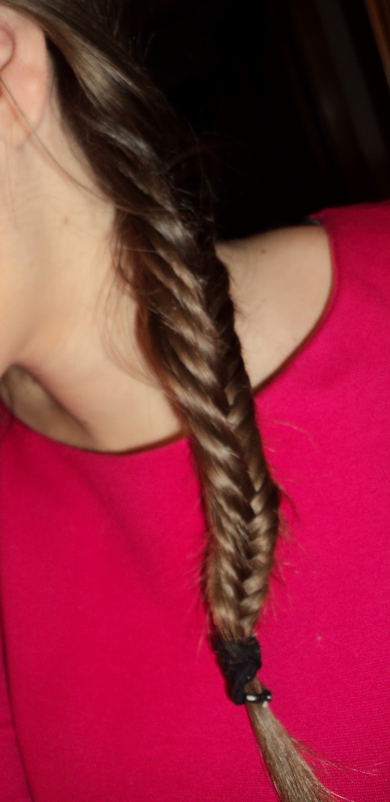 Finalmente fiz uma trança espinha de peixe. Ok, foi a minha irmã que fez!