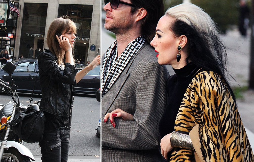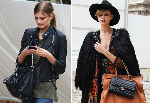 De um lado o simple&clean, característico das modelos (off-runway) - biker jackets, cinzento e preto, cara lavada, cabelos caídos, militar boots. O estilo criado fica invejável - mas como é que esta veste meia dúzia de trapos e fica perfeita?