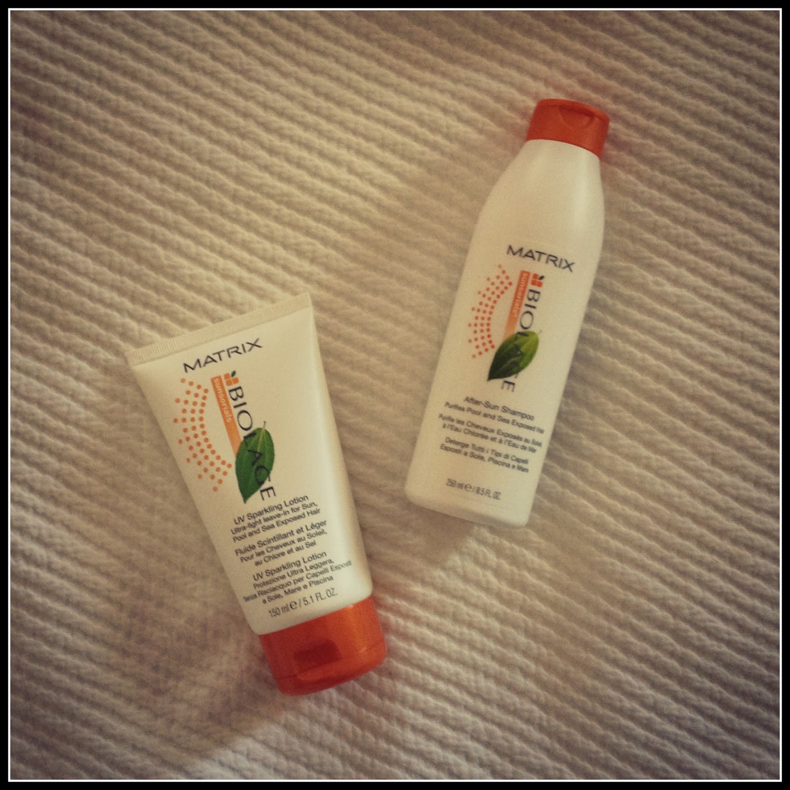 Uma das minhas marcas preferidas, a Matrix, também tem uma linha para cuidados com o sol, a Biolage Sunsorials. Aqui na imagem estão dois produtos que estou muito ansiosa de experimentar: um champô after-sun, e um leave-in para usar durante a exposição ao sol. Pelo que já usei da marca, acho que posso contar com cabelo extremamente hidratado e macio!! A ver...