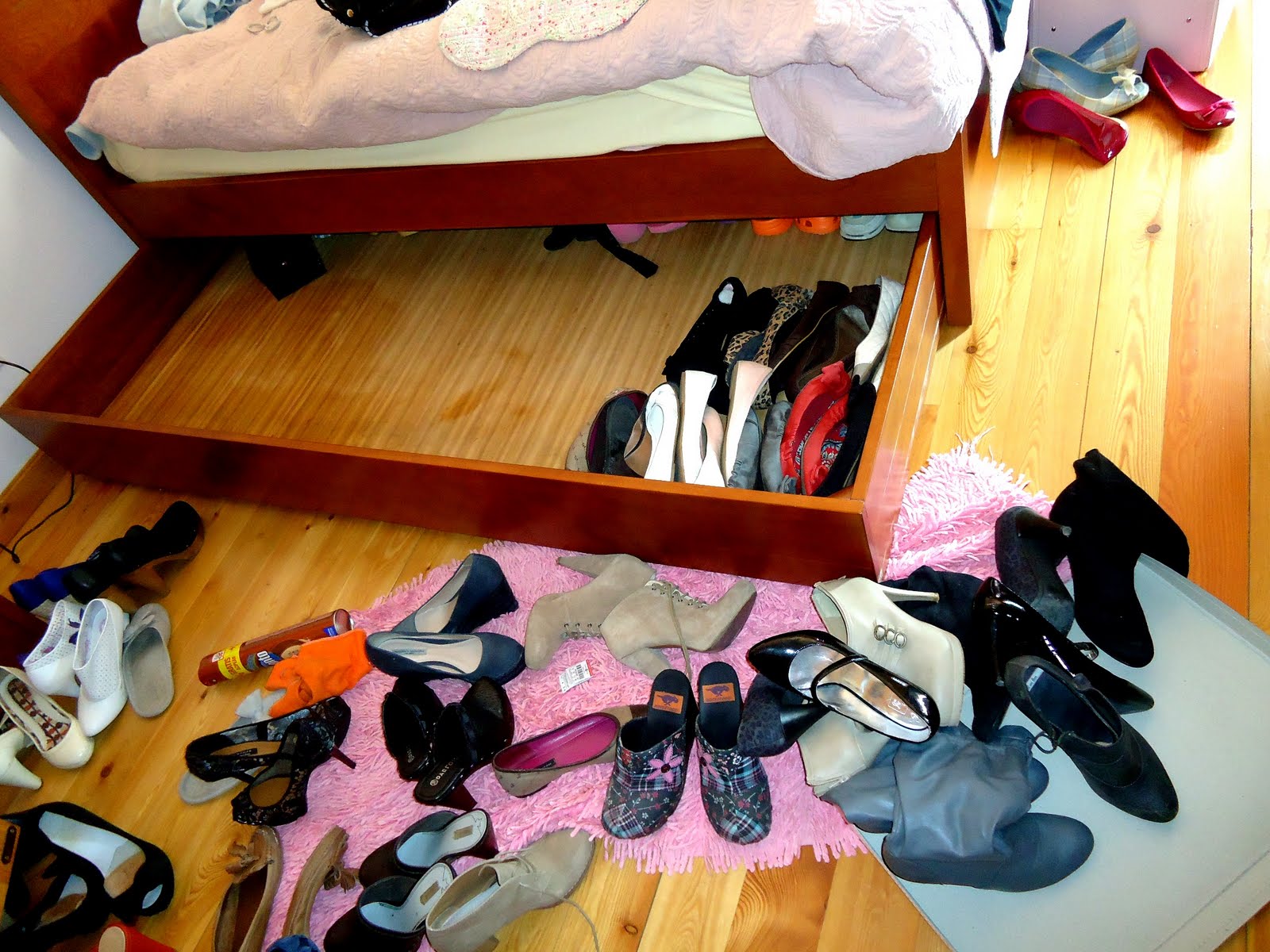 A limpeza, como sempre, foi intensa. Tirar tudo cá para fora, limpar o gavetão (ao detalhe), e depois limpar os sapatos antes de os arrumar. Muitas dores de costas e pernas depois, o resultado da arrumação foi diferente por dois motivos: fiz uma arrumação diferente, que gostei imenso; e cheguei à conclusão que me andei a esticar nos sapatos! Claro que grande parte dos que compro são em saldos, mas ainda assim, não é preciso tanto.